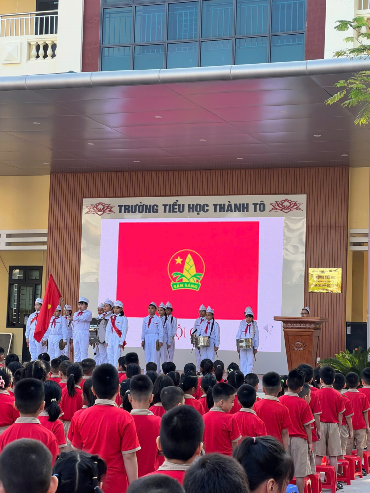 Sáng thứ Hai ngày 14/10/2024, trong bầu không khí ấm áp làm cho mọi thứ trở nên sống động, tươi mới. Liên đội trường Tiểu học Thành Tô long trọng tổ chức Lễ chào cờ đầu tháng 10. Dự lễ chào cờ có thầy giáo Nguyễn Mạnh Dũng : Bí thư chi bộ - Hiệu trưởng nhà trường, cô giáo Phạm Thị Vân Anh – Phó Hiệu trưởng, các thầy cô trong Hội đồng sư phạm, cùng toàn thể học sinh nhà trường.
