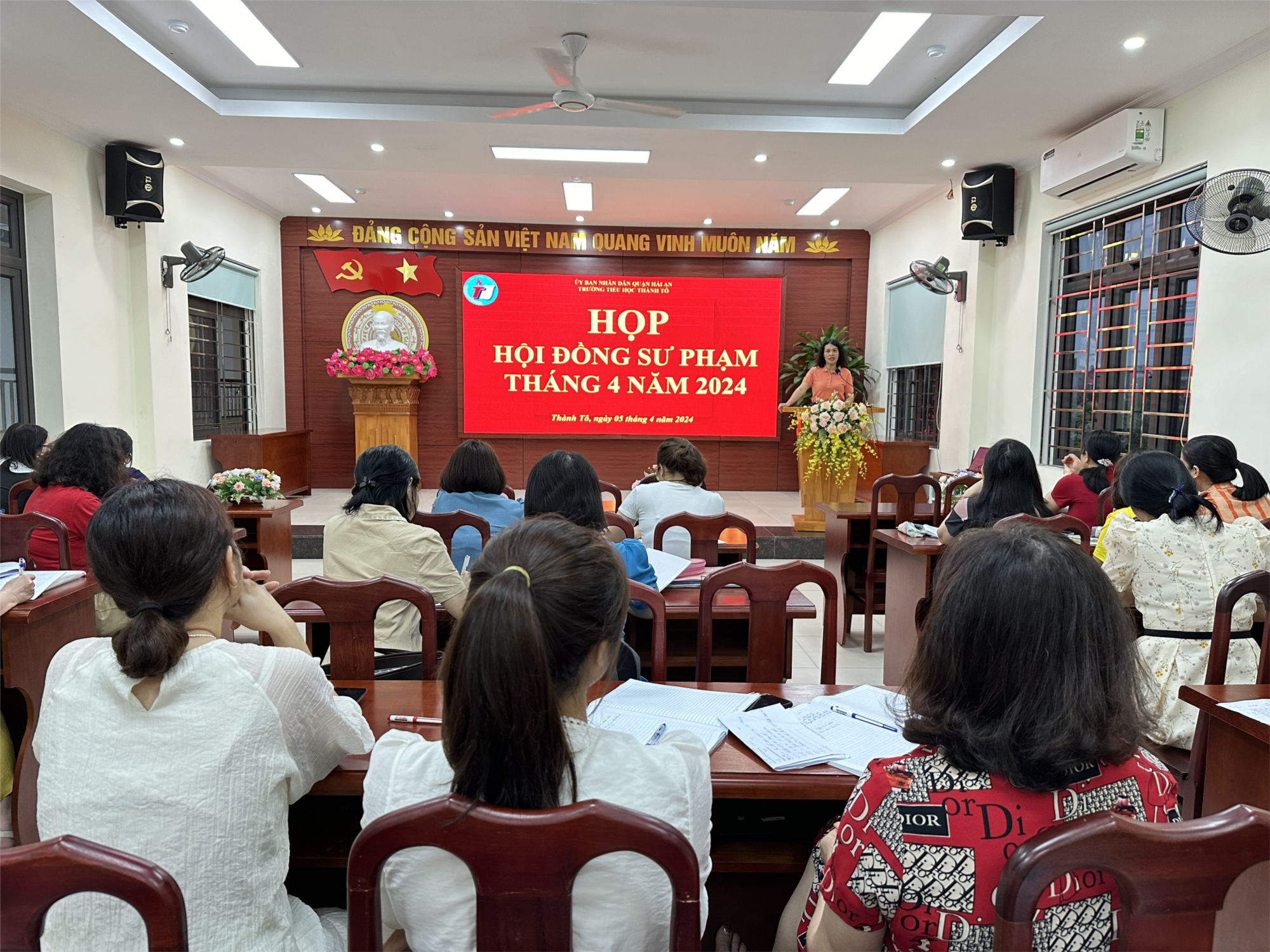 Họp Hội đồng sư phạm là một hoạt động thường kỳ của mỗi nhà trường. Đây là dịp để toàn thể nhà trường nhìn lại chính mình, đánh giá những việc làm được và chưa làm được của Hội đồng sư phạm trong thời gian trước đó và triển khai kế hoạch cho thời gian tiếp theo. Vào hồi 17h20 ngày 05/04/2024, trường Tiểu học Thành Tô tổ chức họp Hội đồng sư phạm thường kì tháng 4 năm học 2023 - 2024. Cuộc họp nhằm đánh giá công tác tháng 3 và triển khai công tác tháng 4.