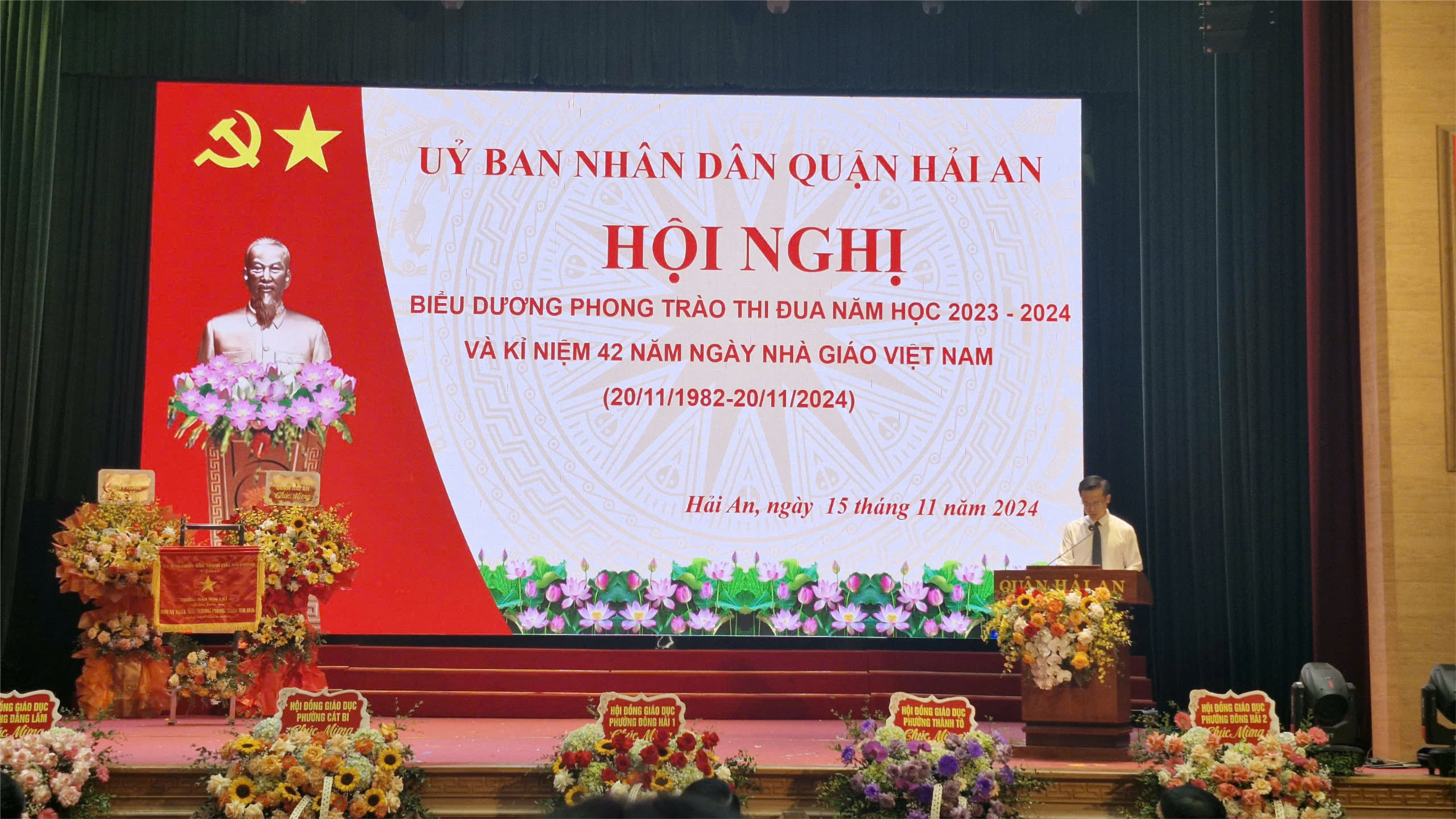 Năm học 2023-2024, chất lượng đội ngũ giáo viên và quản lý giáo dục của quận Hải An tăng cả về số lượng, chất lượng; 98,89% cán bộ quản lý, giáo viên đạt chuẩn (tăng 1,04% so với năm học trước), riêng trình độ đội ngũ cấp THCS đạt chuẩn 100%; trình độ đào tạo trên chuẩn đạt 30,6%. Chất lượng giáo dục toàn diện của quận tiếp tục khẳng định vững chắc trong tốp đầu thành phố. Cụ thể, chất lượng thi vào lớp 10 THPT công lập tiếp tục được khẳng định, với tổng điểm trung bình 3 môn Toán, Văn, Tiếng Anh đạt 8,106 điểm; có 112 học sinh đỗ vào THPT chuyên Trần Phú, 8 học sinh đạt thủ khoa trong kỳ thi vào lớp 10 THPT. Công tác bồi dưỡng học sinh giỏi, học sinh năng khiếu đạt nhiều kết quả cao, cụ thể cấp tiểu học, THCS đạt 869 giải trong các cuộc thi, giao lưu các cấp (tăng 559 giải so với năm học trước); cấp THPT đạt 310 giải, trong đó 4 huy chương học sinh giỏi quốc tế, giải cấp quốc tế, 96 giải cấp quốc gia, 210 giải cấp thành phố (tăng 64 giải so với năm học trước). Quận tiếp tục tập trung cao nguồn lực đầu tư cơ sở vật chất, trang thiết bị đạt 344 tỷ đồng; xây dựng 10 phòng học thông minh với kinh phí 5 tỷ đồng, đáp ứng yêu cầu chuyển đổi số, nâng cao chất lượng giáo dục.