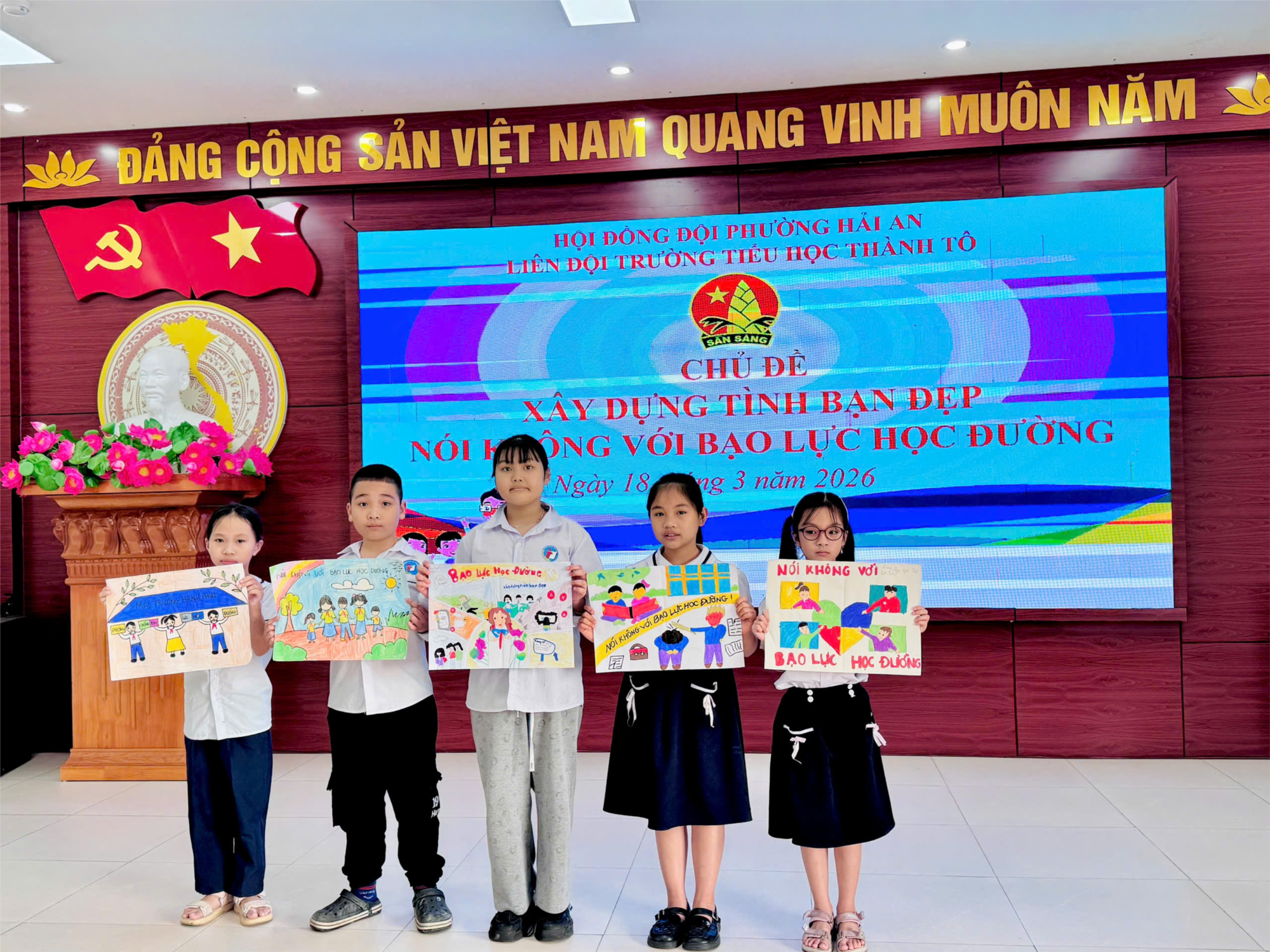 Nhằm lan tỏa thông điệp yêu thương và kiên quyết bài trừ vấn nạn bạo lực học đường, học sinh trường Tiểu học Thành Tô tổ chức cuộc thi vẽ tranh với chủ đề "Xây dựng tình bạn đẹp – Nói không với bạo lực học đường". Đó là một "sân chơi" đầy màu sắc và ý nghĩa.