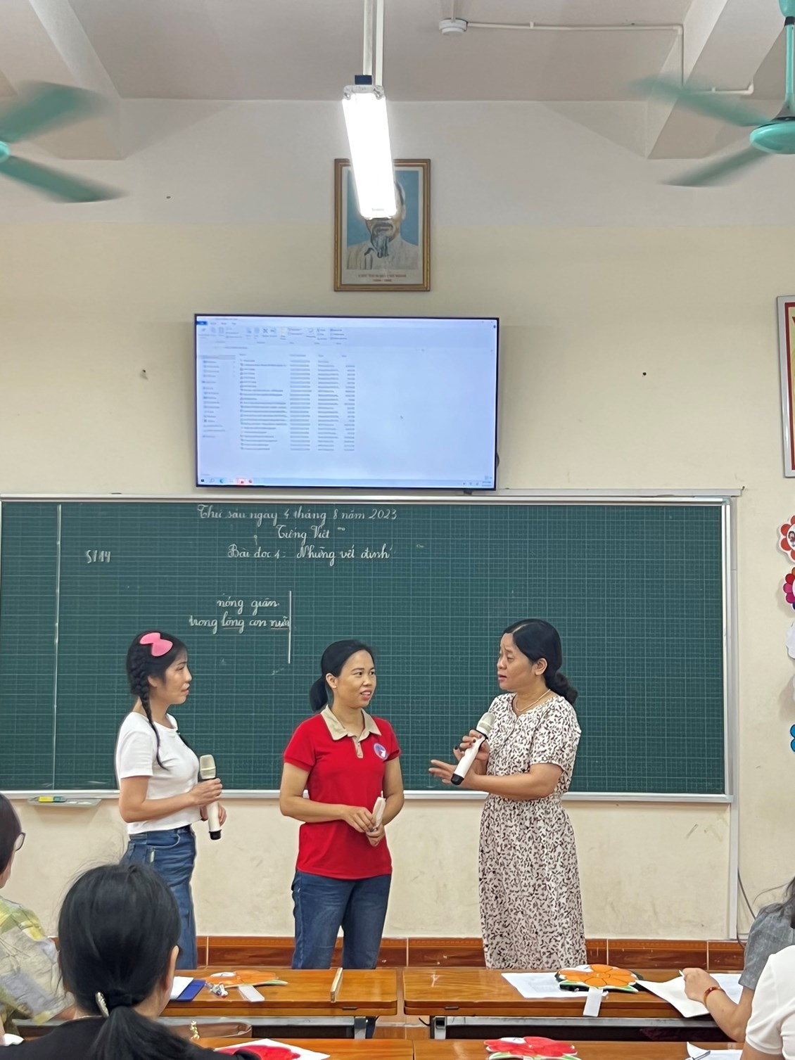 Sáng ngày 4/8/2023, giáo viên Trường Tiểu học Thành Tô đã tham dự tập huấn và lên lớp minh họa các tiết dạy lớp 4 môn Tiếng Việt, Lịch sử - Địa lý bộ Cánh Diều và môn Tiếng Anh bộ Kết nối tri thức. Đến dự buổi tập huấn có các đồng chí trong Ban giám hiệu và 100% các đồng chí GV toàn trường có mặt đầy đủ . Đ/c Bùi Thị Hiền, Hoàng Mai Phương và đ/c Vũ Thị Thanh Huyền lên lớp minh họa 3 tiết dạy. Với sự tâm huyết, nhiệt tình, sáng tạo , các đồng chí đã thể hiện được những phương pháp mới nhằm hình thành và phát triển năng lực phẩm chất cho học sinh . Các tiết dạy đã diễn ra chất lượng, hiệu quả, thu hút, tạo niềm vui hứng thú cho người dự.