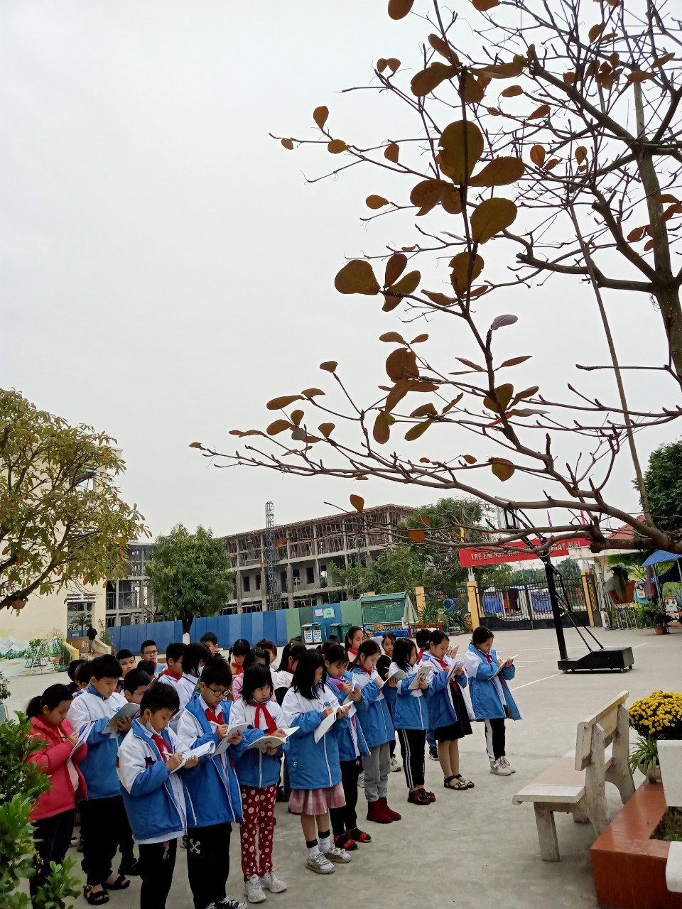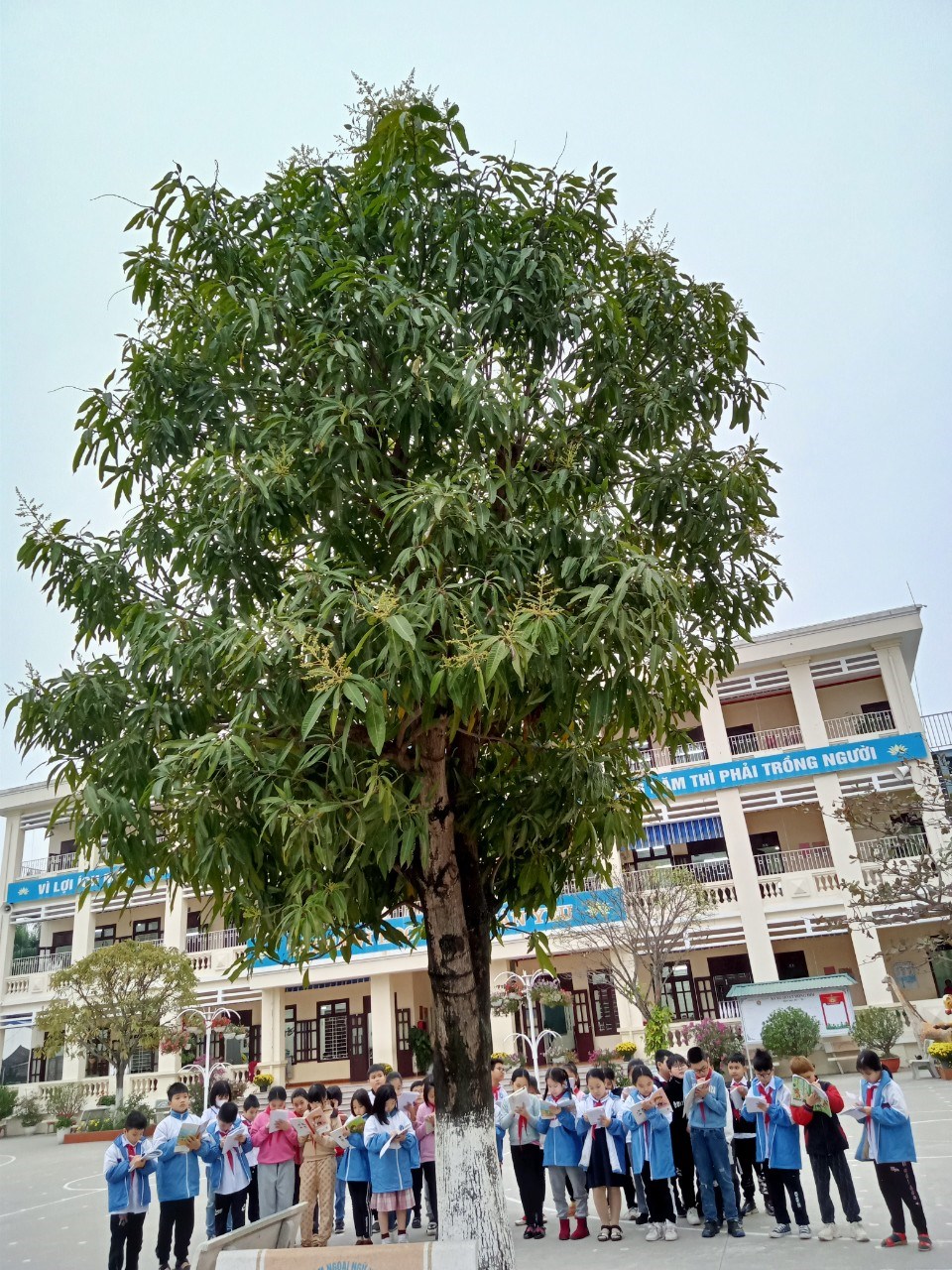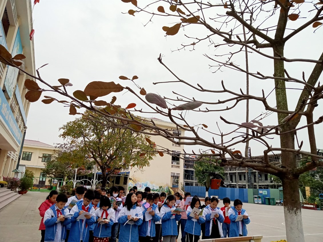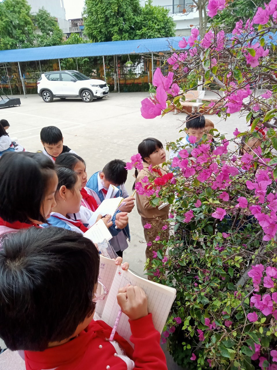 Hôm nay, các em học sinh Lớp 4 đã được ra khuôn viên vườn trường để học tiết tập làm văn: “Luyện tập quan sát cây cối” sau đó, khi trở về lớp, các em sẽ lập dàn ý và thực hành viết bài văn miêu tả cây cối.