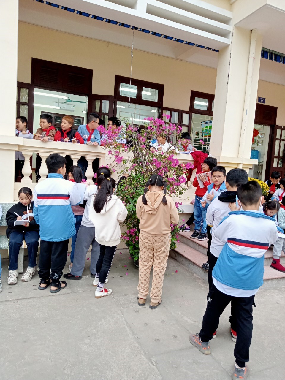 Tiết học thực tế qua hoạt động trải nghiệm luôn tạo hứng thú tuyệt vời cho các em. Bạn nào cũng hào hứng và chăm chú thực hiện nhiệm vụ. Thật thú vị vì các em luôn đặt ra những câu hỏi để biết thêm nhiều điều mới mẻ về thế giới xung quanh. Cảm giác được cùng bạn bè sờ vào gốc cây, cành cây, lá cây, nhặt từng bông hoa vừa rụng xuống chắc hẳn rất thú vị!
