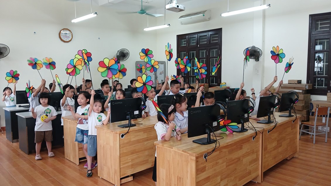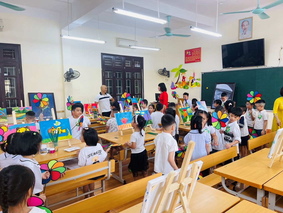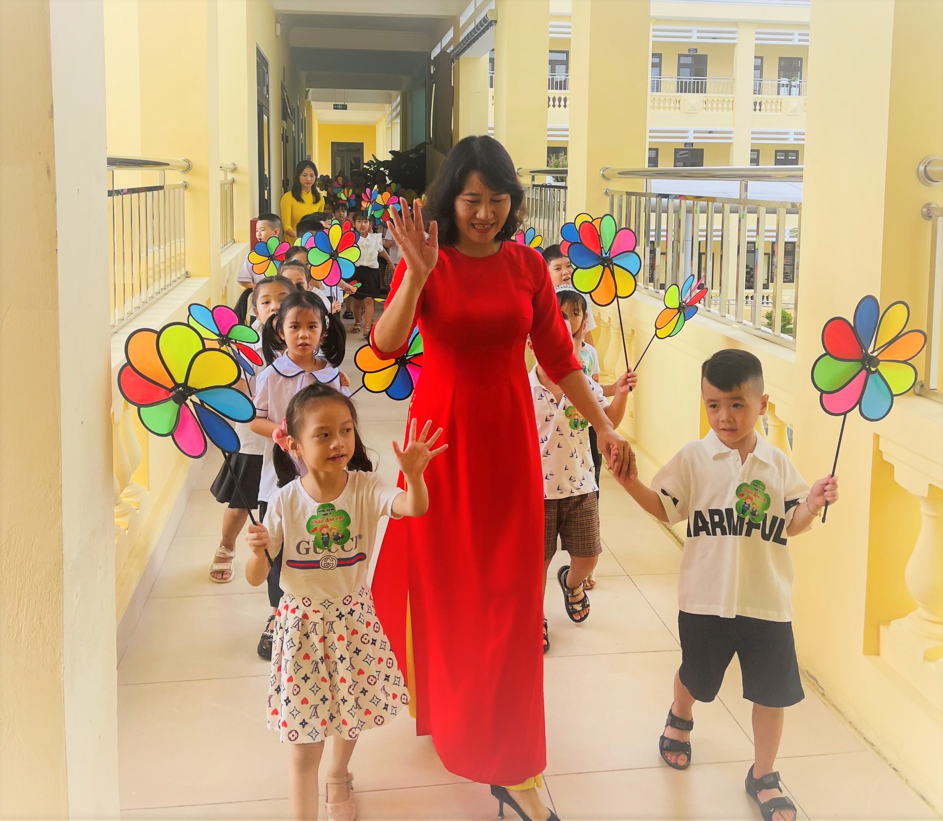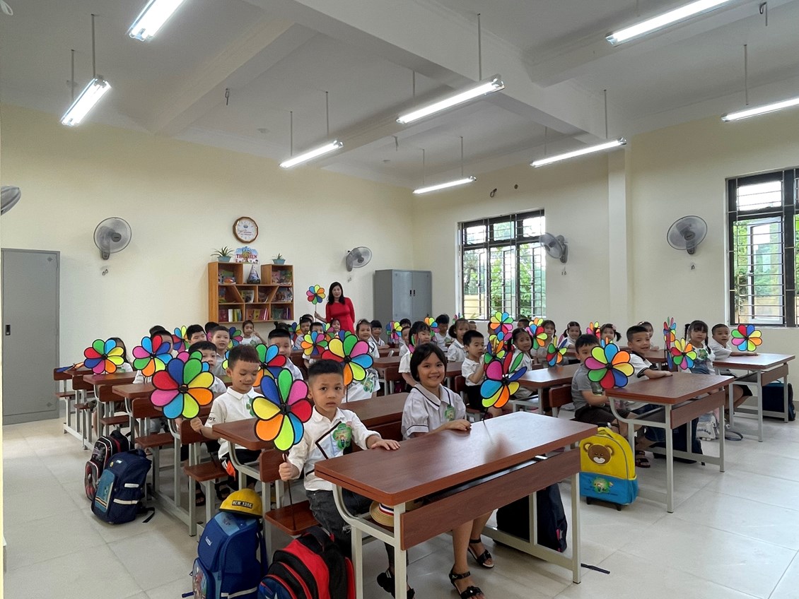 Trường lớp được trang trí rực rỡ, tạo cảm giác vui tươi cho tất cả các em trong ngày đầu đáng nhớ. Ngay từ sáng sớm, các em học sinh đã được các cô giáo và các cô bác nhân viên nhà trường trong vai những nhân vật ngộ nghĩnh đáng yêu như Ếch xanh, chim cánh cụt, Pororo và Khỉ đón chào từ ngoài cổng. Không còn cảm giác bỡ ngỡ ban đầu mà thay vào đó là không khí vui tươi, thân thiện…... Mỗi em còn được các cô giáo tặng những món quà xinh xắn như chong chóng, sticker để động viên, khích lệ các em chăm ngoan đến trường. Sau khi vào lớp, các cô dẫn các em đi tham quan khuôn viên trường, các phòng chức năng và khu vui chơi của trường. Buổi học đầu tiên cô giáo sẽ giúp các em làm quen với việc chào hỏi, xếp hàng, biết sử dụng đồ dùng học tập cá nhân, đồ dùng học tập trong lớp, biết làm theo hiệu lệnh của cô trong tiết học.. Nhiều bạn ban đầu còn rụt rè, e ngại, nhưng sau đó đã rất tự tin phát biểu, giới thiệu về chính mình. Các em học sinh khối lớp 1 năm nay còn được nhận món quà đặc biệt đó là có các cô bác Đài Phát thanh và Truyền hình Hải Phòng về đưa tin trong ngày tựu trường.
