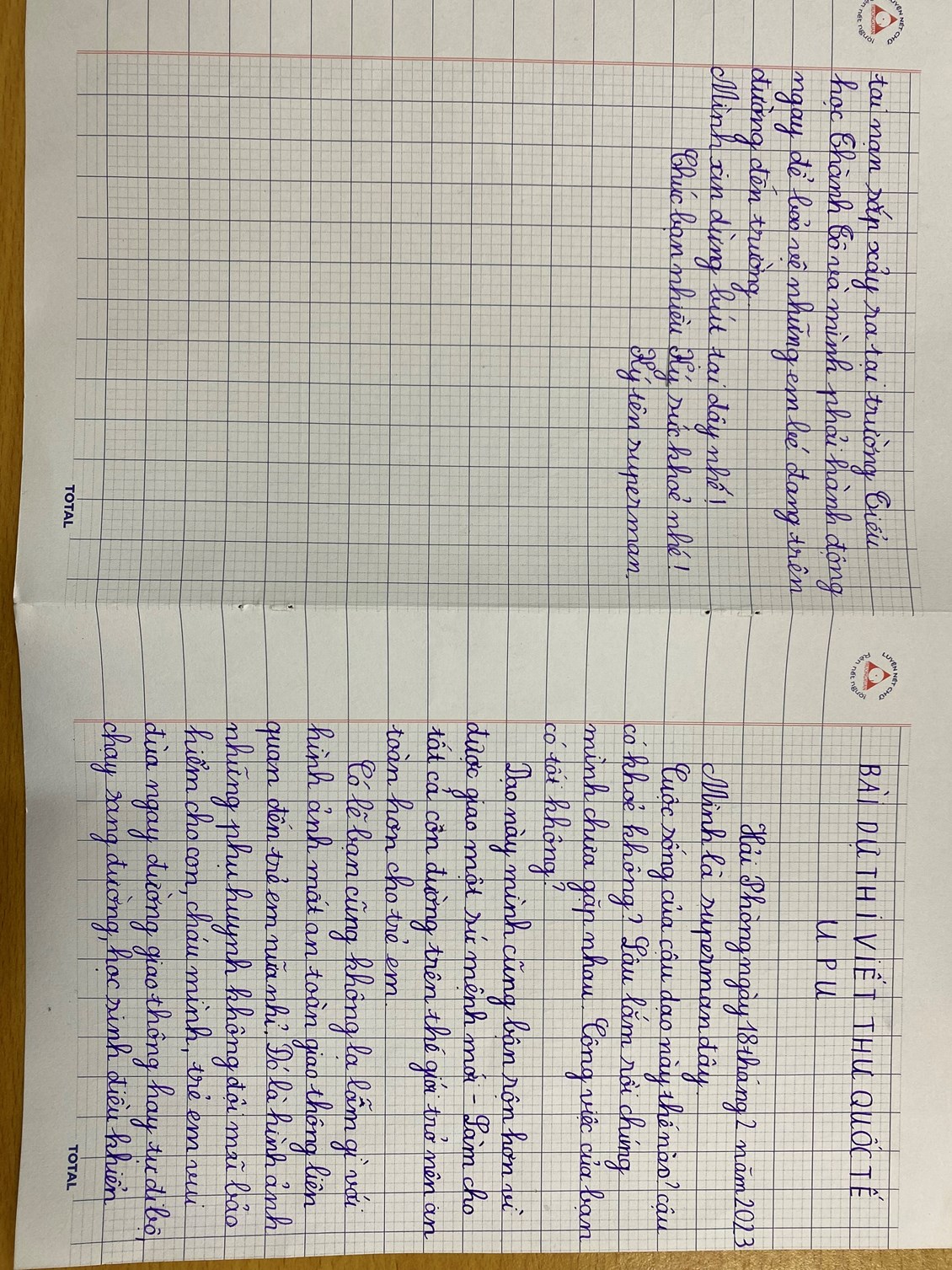 Cuộc thi Viết thư Quốc tế UPU của Liên minh Bưu chính Thế giới (UPU) lần thứ 52 (năm 2023) được Bộ Thông tin và Truyền thông phối hợp với Bộ Giáo dục và Đào tạo, Hội Nhà văn Việt Nam, Trung ương Đoàn Thanh niên cộng sản Hồ Chí Minh, TCT Bưu điện Việt Nam và Báo Thiếu niên Tiền phong và Nhi đồng tổ chức.