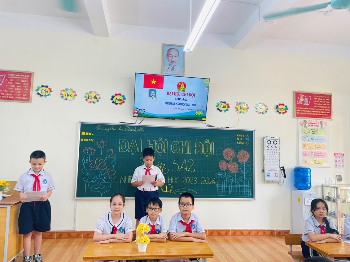 Đại hội đã bầu Lê Khả Tùng Dương , Phạm Minh Đức, Trịnh Hải Nam vào BCH Chi đội lớp 5A2 năm học 2023 - 2024 . Các em là những đội viên tiêu biểu có phẩm chất đạo đức tốt, có năng lực hoạt động Đội và có tinh thần trách nhiệm cao trong mọi công việc và các em sẽ quyết tâm thực hiện tốt mọi thắng lợi mục tiêu trong năm học mới của Chi đội lớp 5A2 trường Tiểu học Thành Tô.
