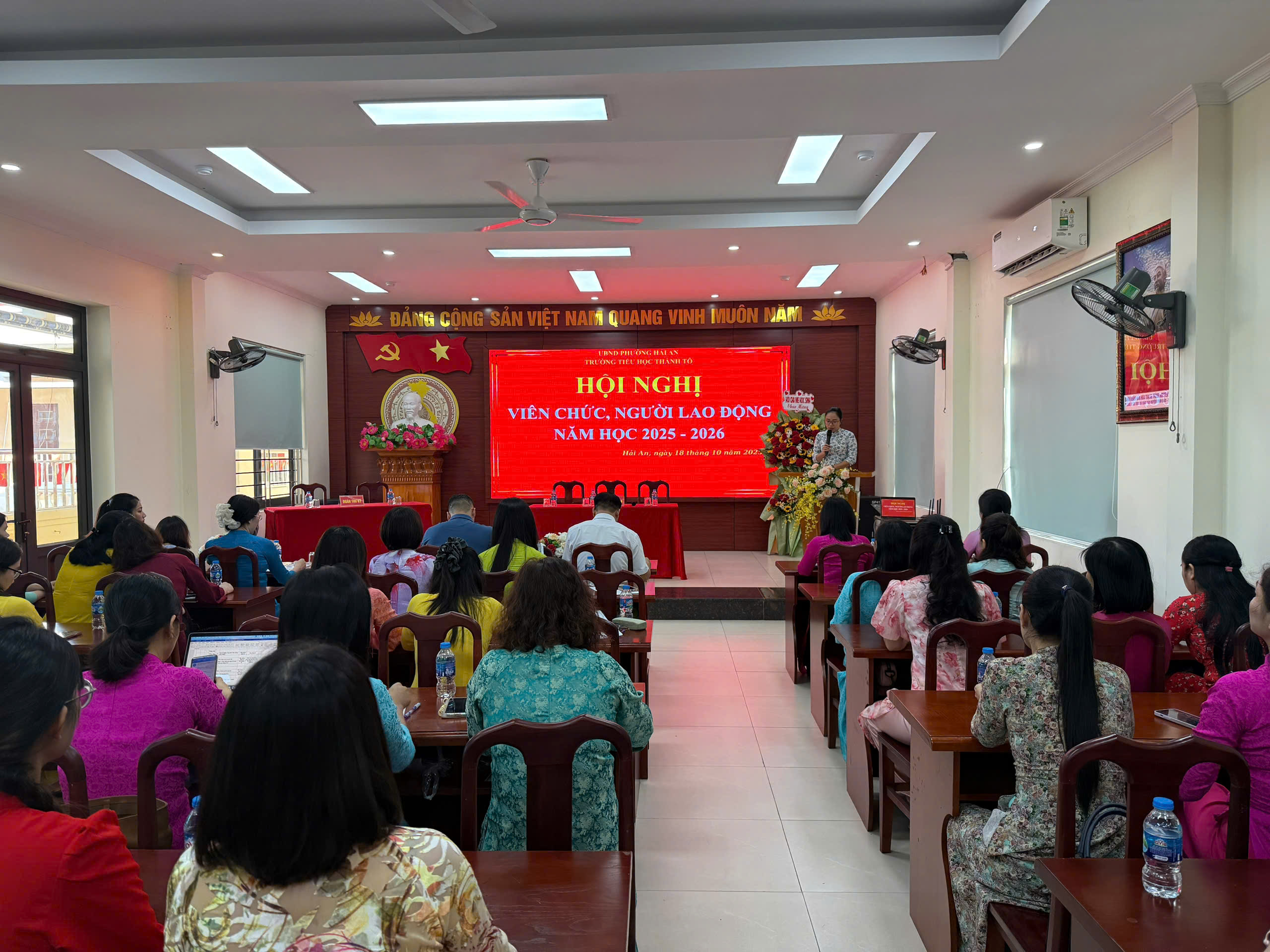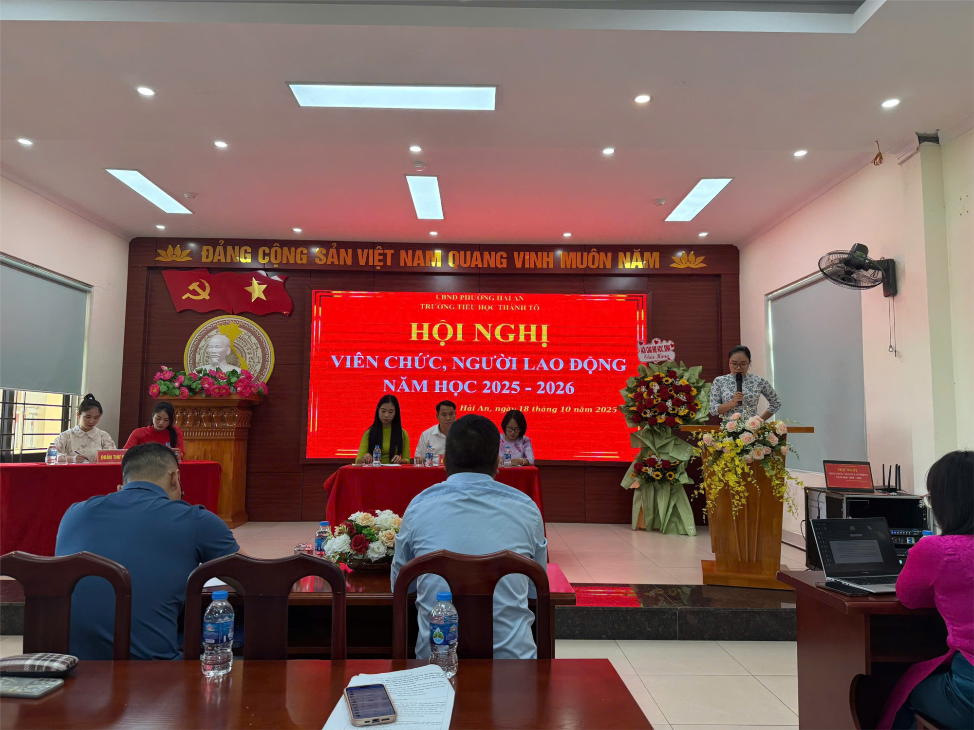 Thực hiện văn bản số 7074/HD-SGD SĐT ngày 25/9/2025 của Sở Giáo dục và Đào tạo Hải Phòng về việc "Hướng dẫn tổ chức Hội nghị cán bộ, viên chức, người lao động năm học 2025 - 2026", sáng nay 18/10/2025, Trường Tiểu học Thành Tô đã trang trọng tổ chức Hội nghị cán bộ, viên chức, người lao động năm 2025- 2026.