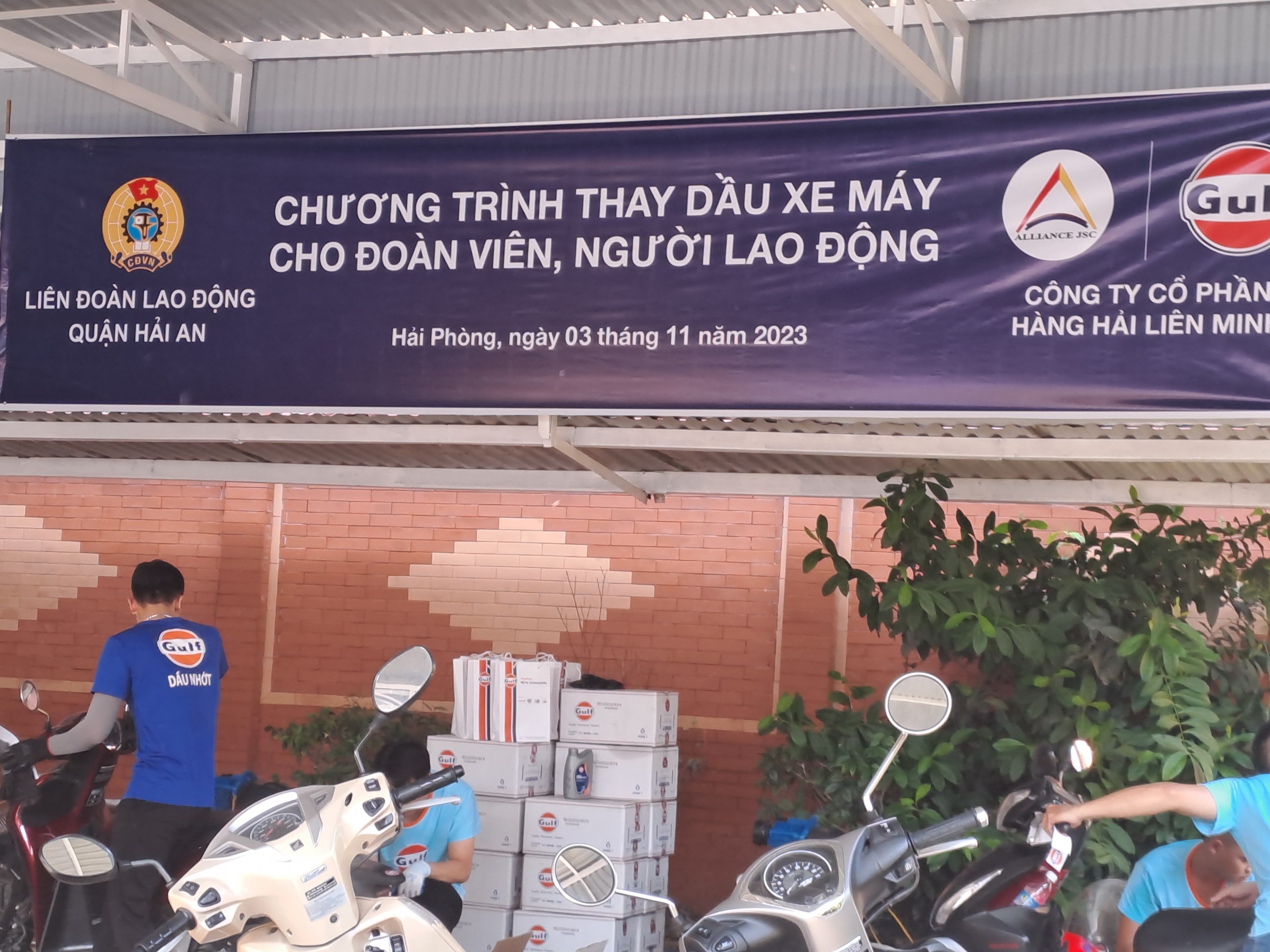 Chương trình thay dầu xe máy miễn phí là một hoạt động ý nghĩa của Liên đoàn Lao động quận Hải An và Công ty Hàng hải Liên Minh nhằm hỗ trợ cho các đoàn viên, người lao động và viên chức trong việc bảo dưỡng và duy trì sự an toàn khi sử dụng xe máy.