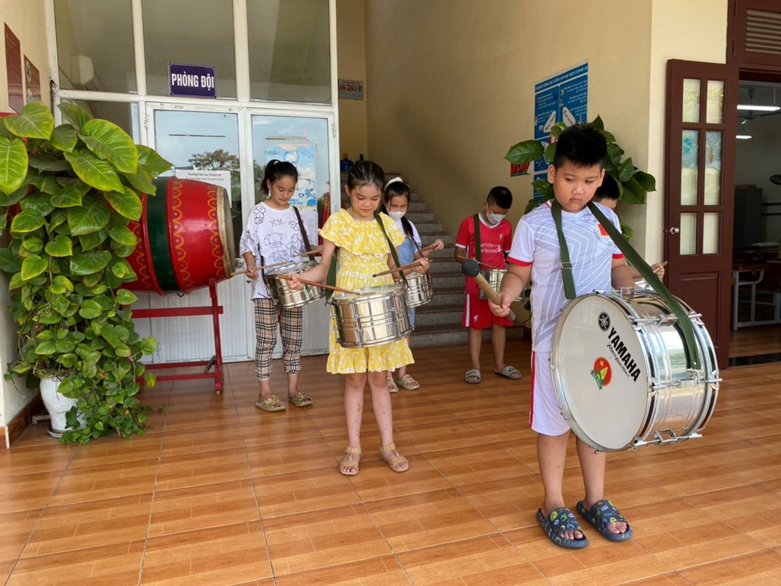 Hè đã đến với tất cả các em học sinh thân yêu. Các em được thỏa thích vui chơi, giải trí bên người thân, gia đình với những buổi picnic, trải nghiệm. Các em được tham gia và phát huy tài năng ở Câu lạc bộ sở thích của mình. Trong số các bạn nhỏ tham gia các CLB có những chú chim nhỏ của Đội nghi thức không quản cái nắng hè oi bức vẫn dậy thật sớm đến đúng giờ và tập luyện rất nghiêm túc. Các em miệt mài, hăng say luyện tập cùng cô giáo Tổng phụ trách. Dưới sự hướng dẫn của cô , các em được luyện tập các bài trống để phục vụ cho các phong trào, hoạt động Đoàn, đội trong năm học tới. Chúc các em thật nhiều sức khỏe, có một mùa hè thật thú vị!