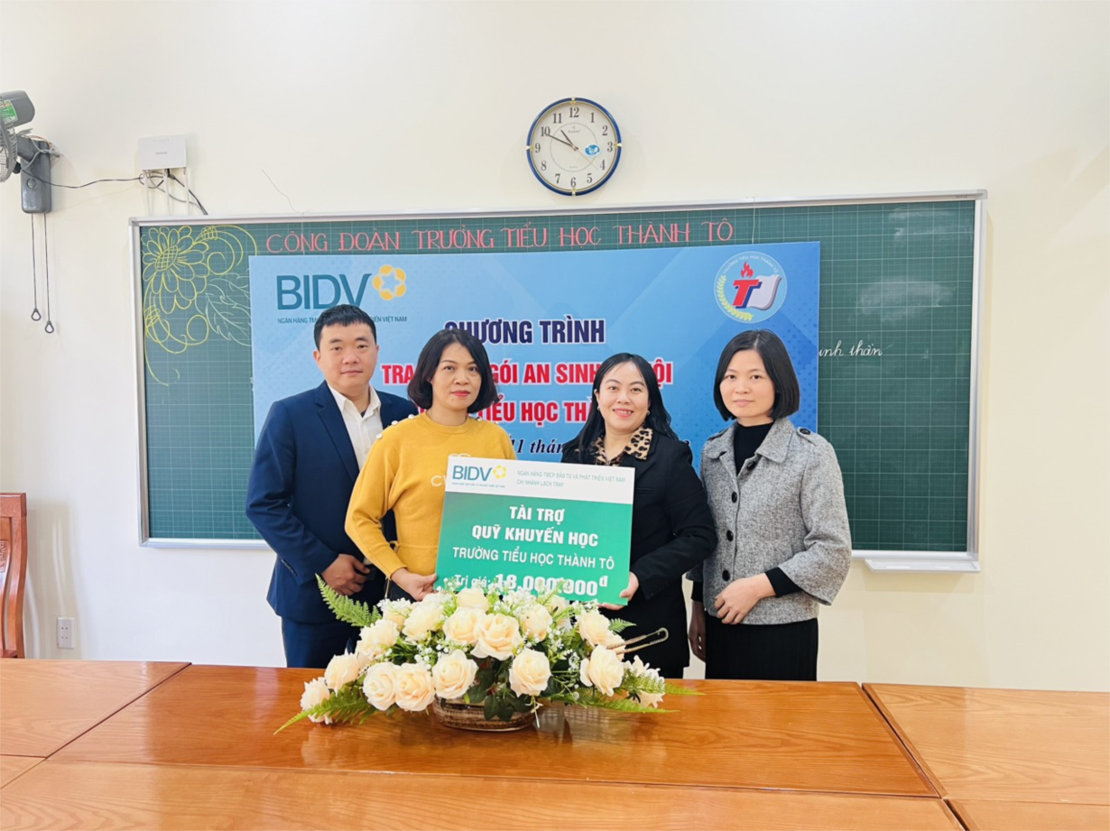 Thông qua gói an sinh xã hội gây quỹ học bổng, đã trao tặng cho học sinh Trường Tiểu học Thành Tô với số tiền là 18.000.000 đồng.