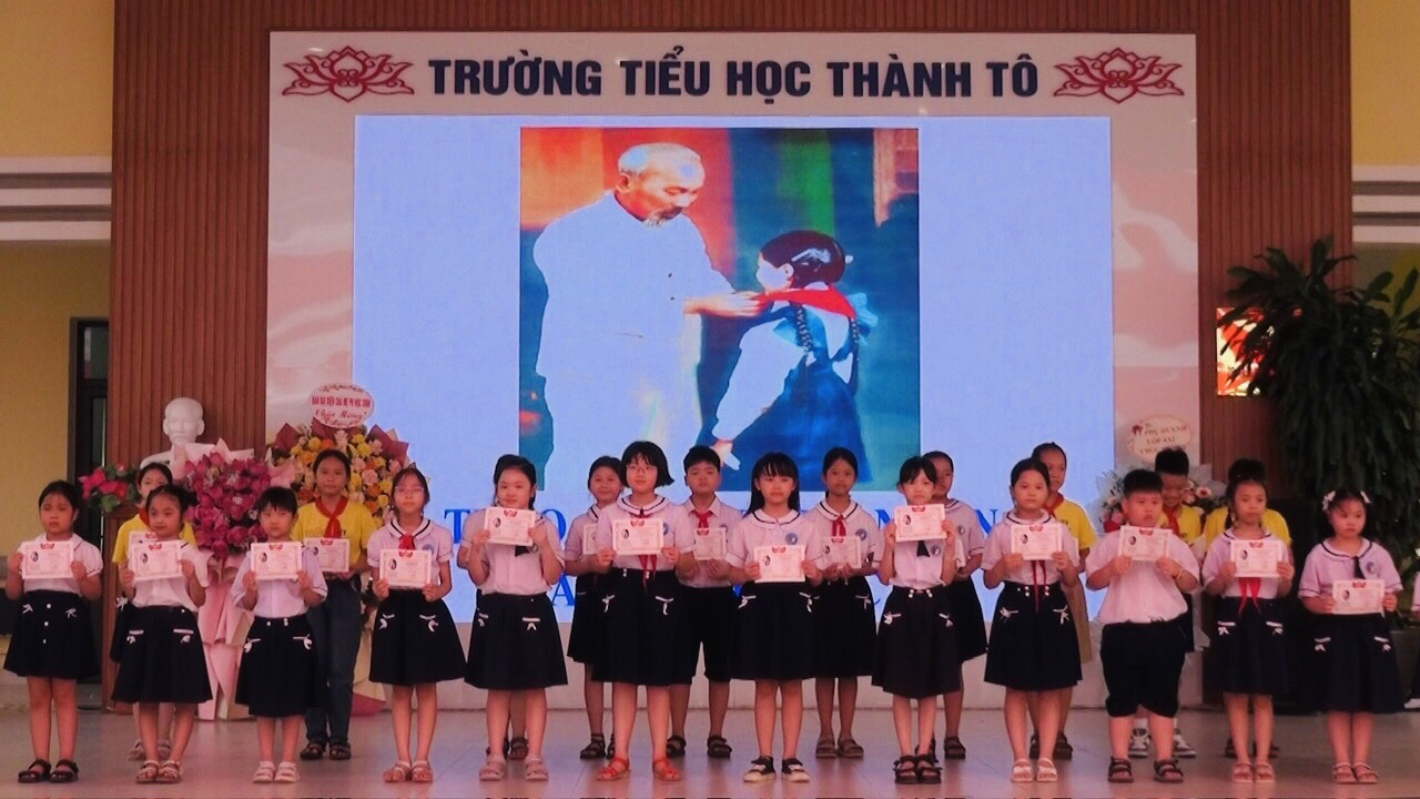 Hòa chung không khí chào mừng Kỷ niệm 134 năm ngày sinh của Chủ tịch Hồ Chí Minh và 83 năm ngày thành lập Đội TNTPHCM. Thực hiện chương trình công tác Đội và phong trào thiếu nhi năm học 2023 - 2024. Sáng ngày 22/5/2024 Liên Đội trường Tiểu Học Thành Tô long trọng tổ chức “ Đại hội Cháu ngoan Bác Hồ, tổng kết năm học, Lễ chia tay học sinh lớp 5” nhằm báo công lên Bác những kết quả đã đạt được và biểu dương những cá nhân, có thành tích xuất sắc trong các hoạt động Đội và phong trào thiếu nhi. Đại hội rất vinh dự được đón cô giáo Trịnh Thị Thu Huyền - Phó trưởng phòng Giáo dục đào tạo, các lãnh đạo chuyên viên phòng Giáo duc, lãnh đạo phường, trưởng Ban đại diện cha mẹ học sinh, phụ huynh học sinh, cùng toàn thể cán bộ, giáo viên, nhân viên, học sinh.