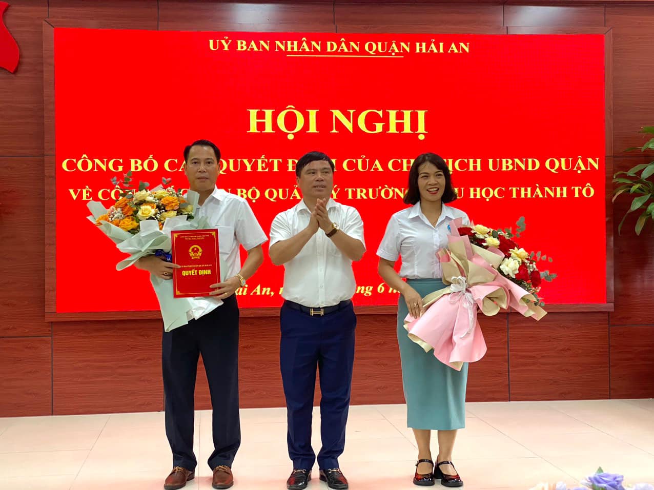Tại hội nghị , đồng chí Dương Đình Ổn – Chủ tịch UBND Quận Hải An đã trao quyết định bổ nhiệm Hiệu trưởng trường Tiểu học Thành Tô cho đồng chí Nguyễn Mạnh Dũng.