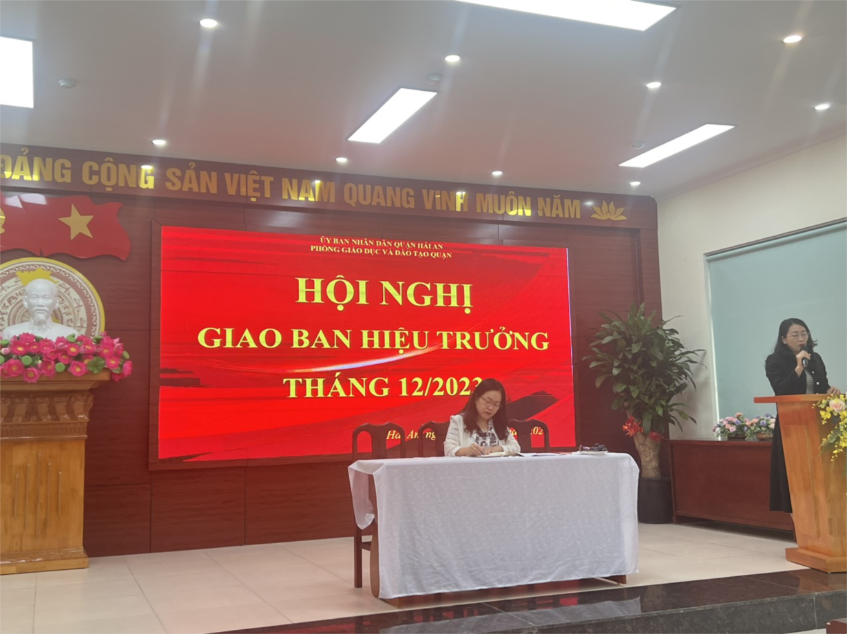 Chiều ngày 4/12/2023, Phòng Giáo dục và Đào tạo quận Hải An tổ chức Hội nghị giao ban Hiệu trưởng các trường Mầm non, Tiểu học, THCS tại Trường Tiểu học Thành Tô.